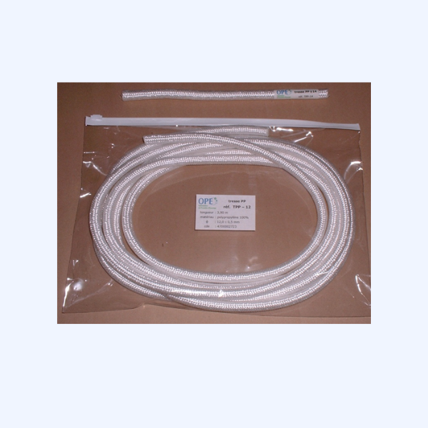 - Diamètre, type de montage (par bourrage), profil de la gorge, section (ronde/carrée), matière (PP, Polyester, PA, PTFE, PEEK, Coton), sans relargage de fils (sauf pour le coton)